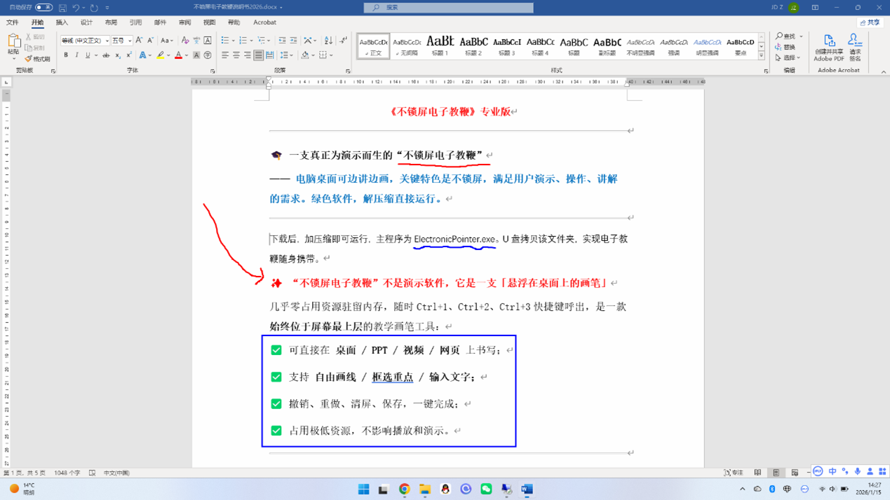 - 适合即兴板书,划线、画框、文字注释