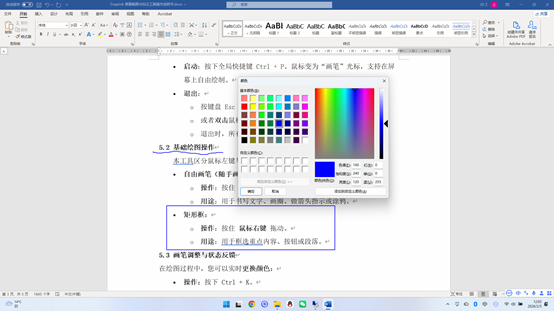 - 效果:弹出标准调色板,选择颜色后点击确定即可应用